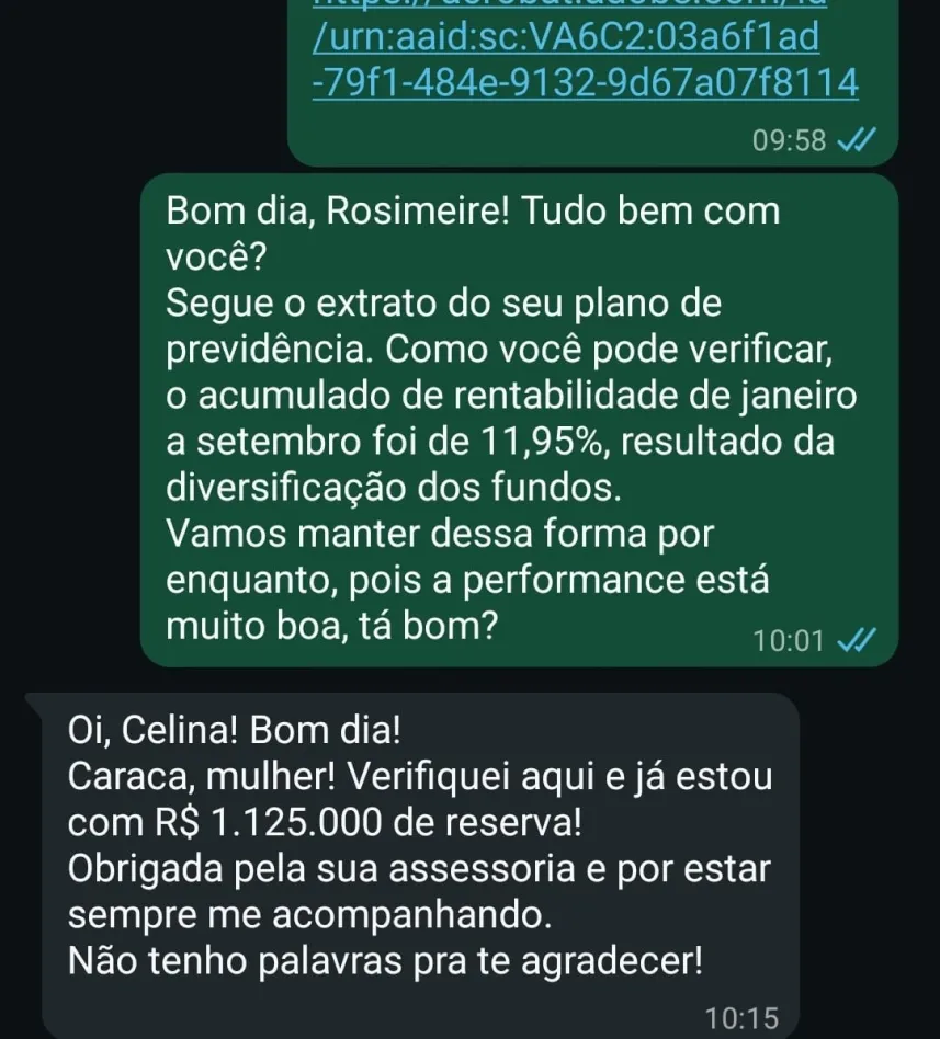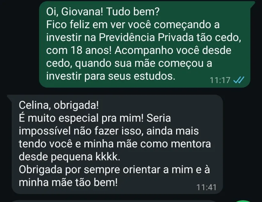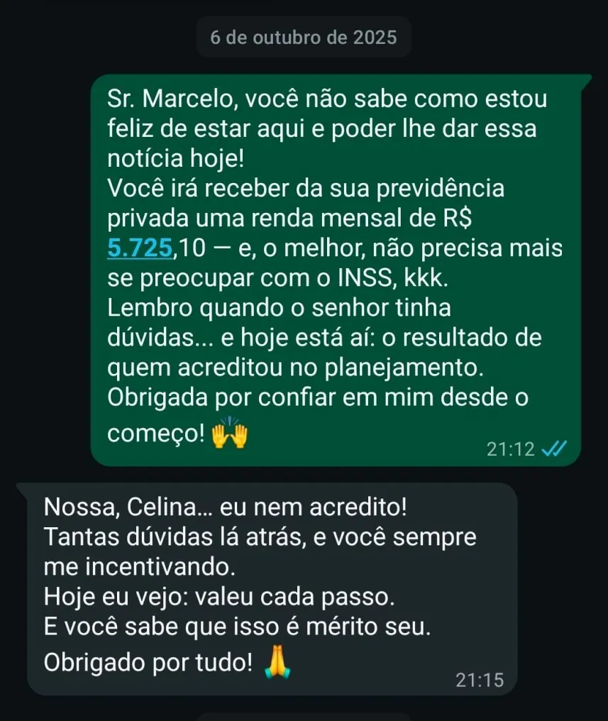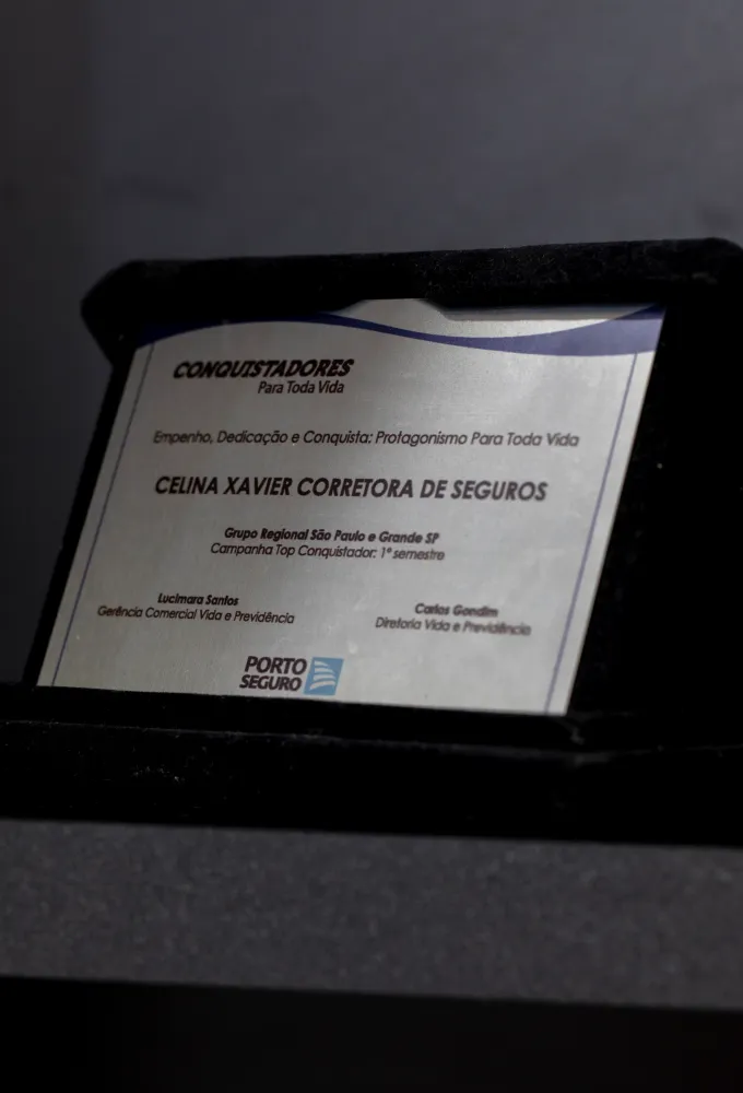 Mas tudo mudou em 2002. Antes mesmo de ingressar na Porto Seguro, Celina participou de uma palestra sobre Previdência Privada e Seguro de Vida. Aquele encontro foi um divisor de águas, despertou nela a paixão por um propósito: ajudar pessoas a protegerem seus sonhos e planejarem um futuro com segurança.