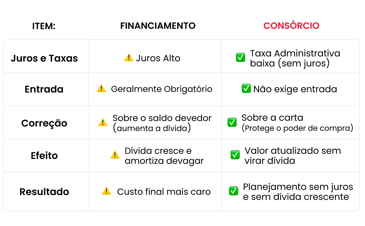 O consórcio é uma forma inteligente e planejada de conquistar um bem, tudo isso sem pagar juros.